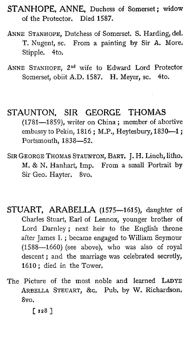 Page 76 Anne Stanhope, Duchess of Somerset; Sir George Thomas Staunton; Arabella Stuart.