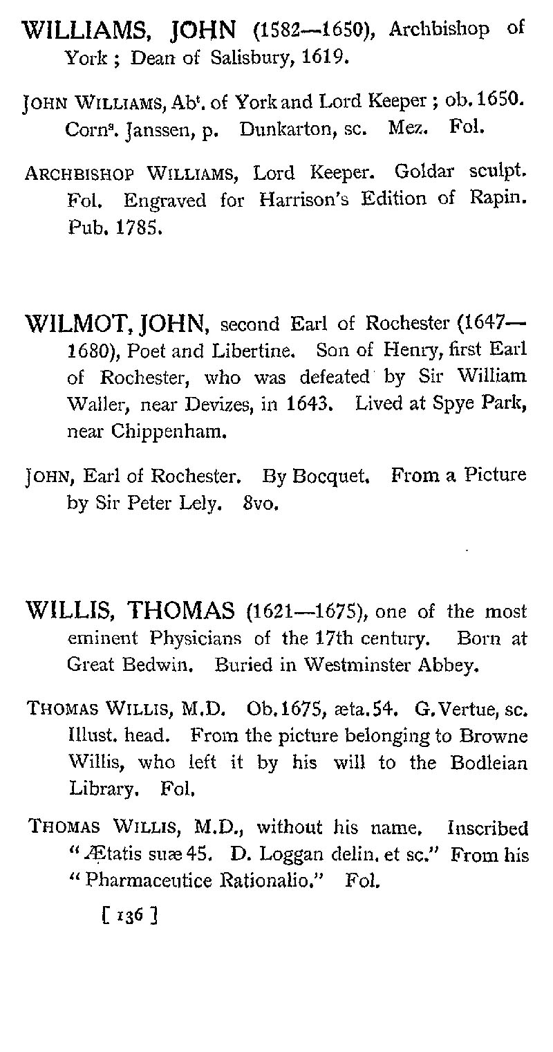 Page 84 John Williams; John Wilmot; Thomas Willis.