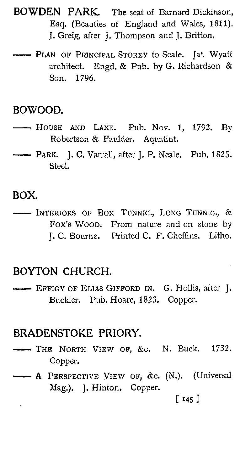 Page 4 Bowden Park; Bowood; Box; Boyton; Bradenstock Priory.