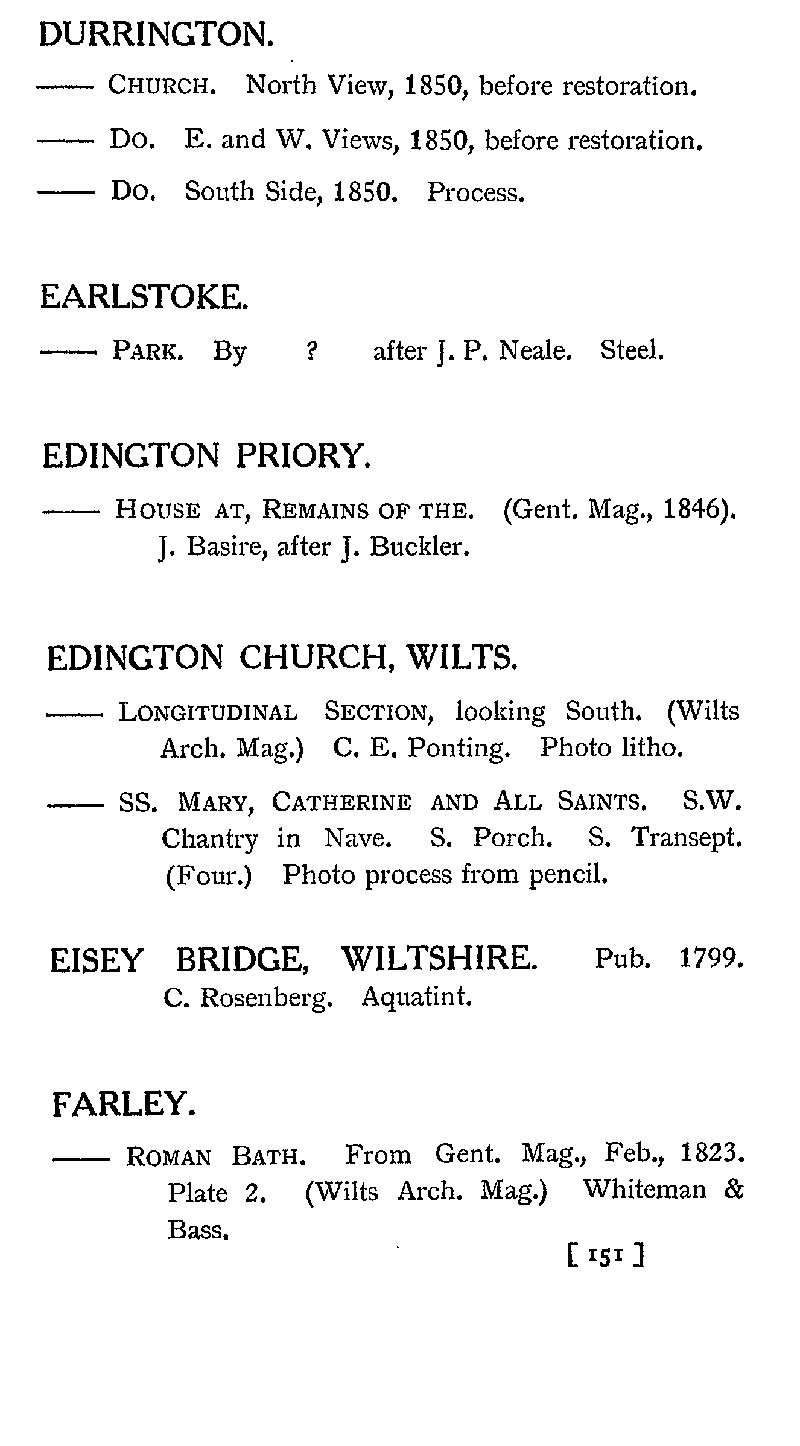 Page 10 Durrington; Erlestoke; Edington; Eisey; Farley.