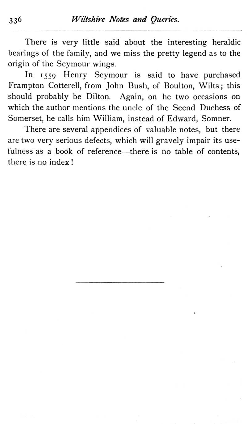 Chapter 8 Isaac Walton, Records of Wiltshire Parishes; Quakerism in Wiltshire; Feet of Fines for Wiltshire; Thomas Bundy's Will; Window and Light 1774-1775; Dugdale of Seend; Queries; Replies; Cartularies of Wiltshire Abbeys etc; Wiltshire Briefs; Notes on Books