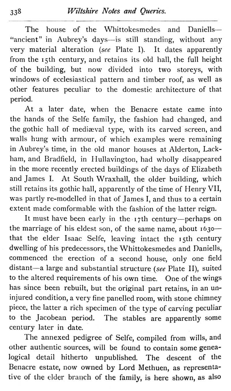 Chapter 9 Old Manor, Beanacre; Place House, Melksham; Thomas Selfe of Cadley, Melksham; Records of Wiltshire Parishes; John Noyes of Calne; Quakerism in Wiltshire; Feet of Fines for Wiltshire; Queries; Replies; Notes on Books