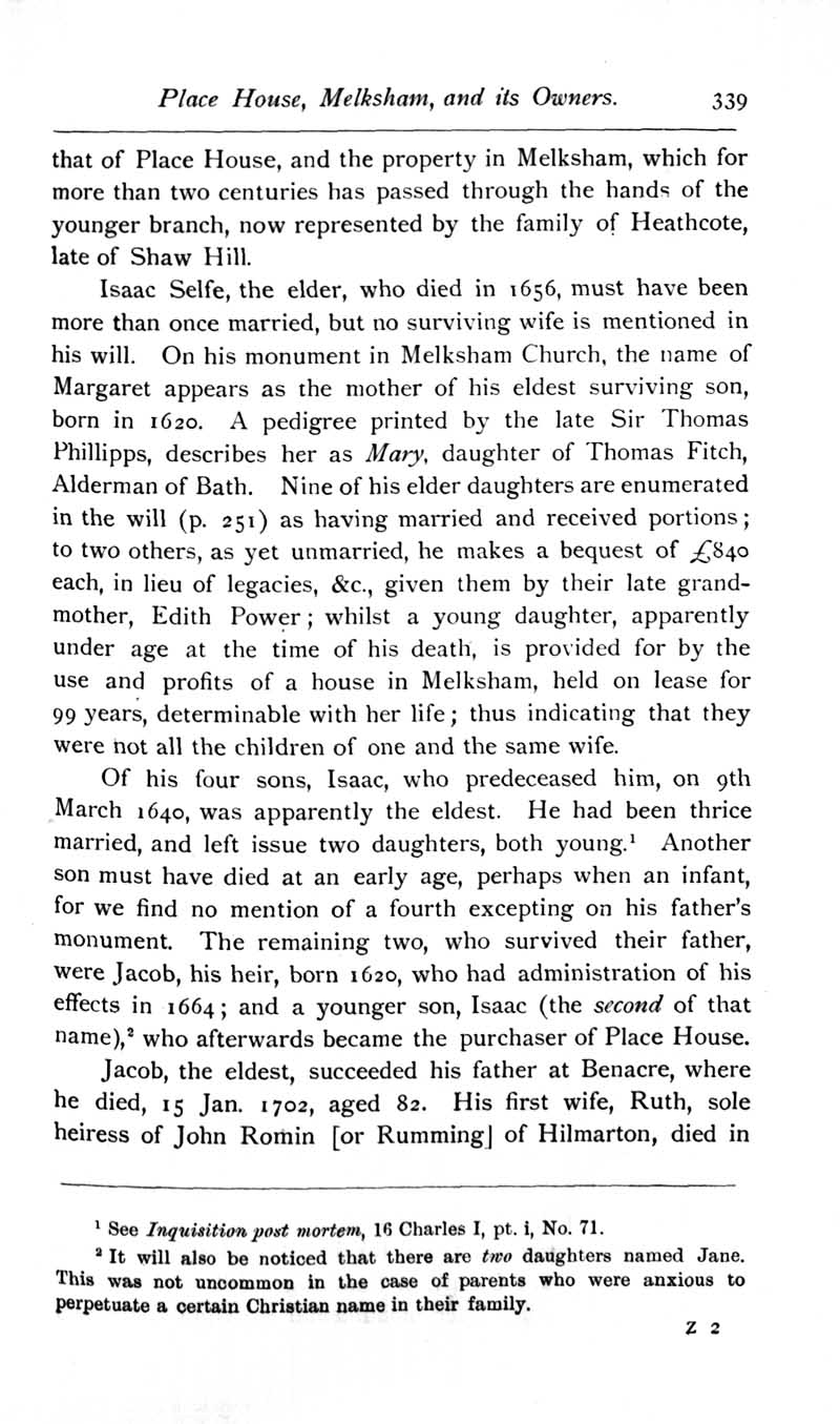 Chapter 9 Old Manor, Beanacre; Place House, Melksham; Thomas Selfe of Cadley, Melksham; Records of Wiltshire Parishes; John Noyes of Calne; Quakerism in Wiltshire; Feet of Fines for Wiltshire; Queries; Replies; Notes on Books