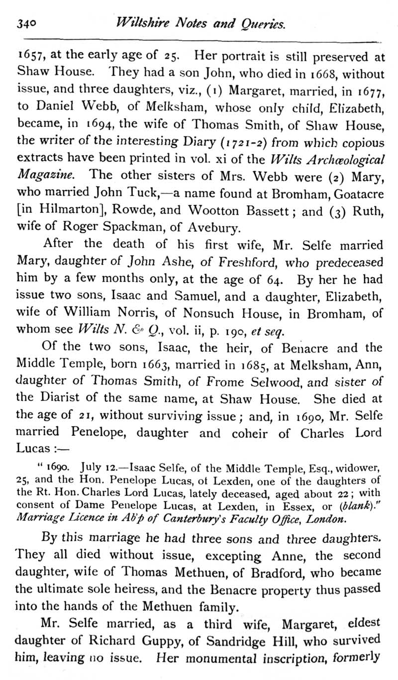 Chapter 9 Old Manor, Beanacre; Place House, Melksham; Thomas Selfe of Cadley, Melksham; Records of Wiltshire Parishes; John Noyes of Calne; Quakerism in Wiltshire; Feet of Fines for Wiltshire; Queries; Replies; Notes on Books