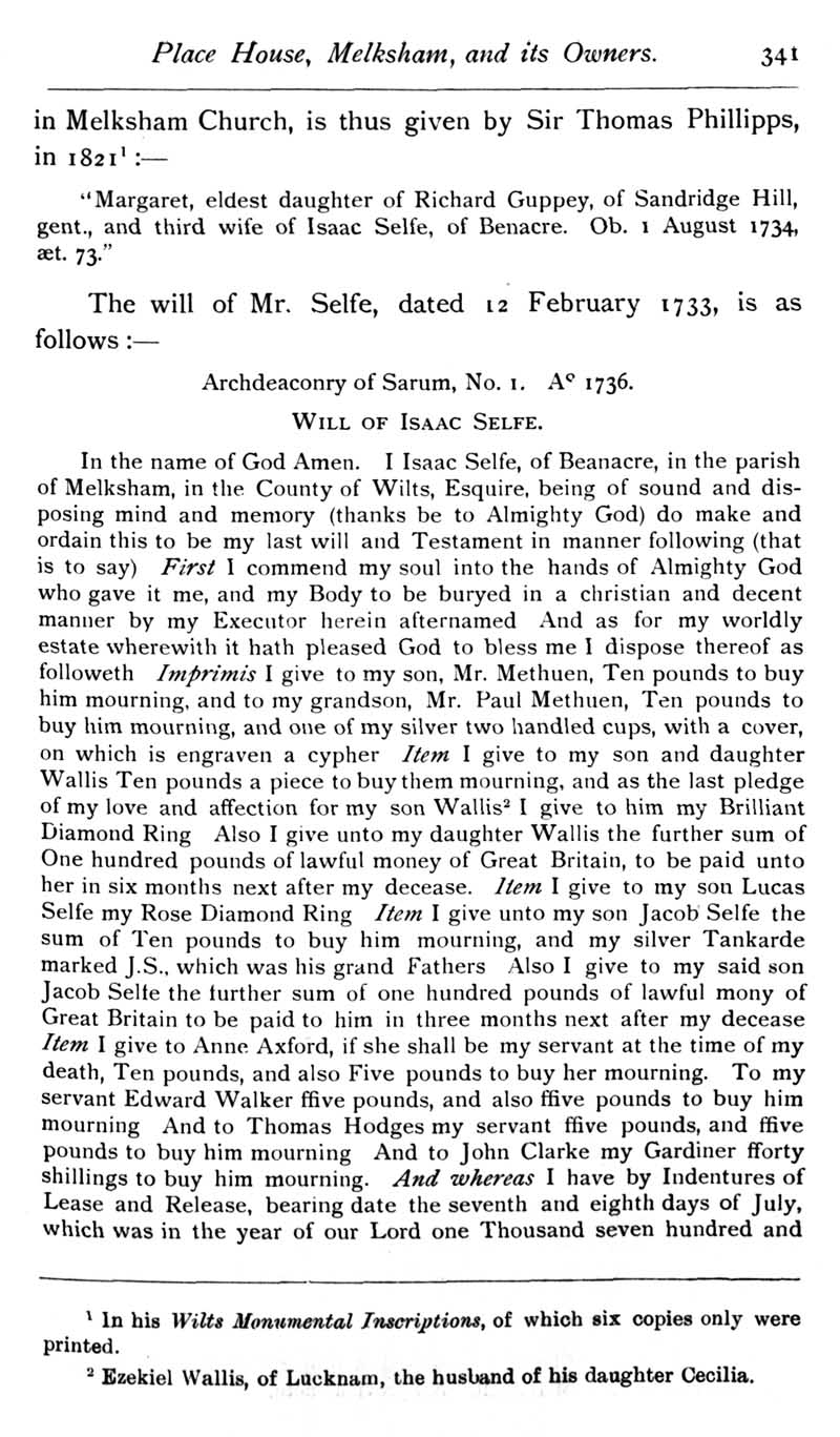 Chapter 9 Old Manor, Beanacre; Place House, Melksham; Thomas Selfe of Cadley, Melksham; Records of Wiltshire Parishes; John Noyes of Calne; Quakerism in Wiltshire; Feet of Fines for Wiltshire; Queries; Replies; Notes on Books