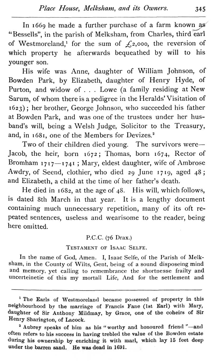 Chapter 9 Old Manor, Beanacre; Place House, Melksham; Thomas Selfe of Cadley, Melksham; Records of Wiltshire Parishes; John Noyes of Calne; Quakerism in Wiltshire; Feet of Fines for Wiltshire; Queries; Replies; Notes on Books