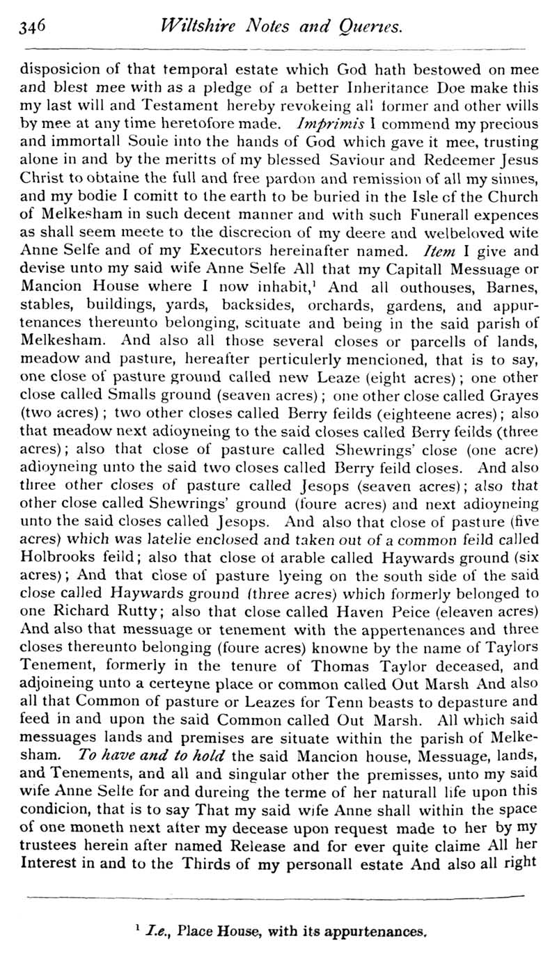 Chapter 9 Old Manor, Beanacre; Place House, Melksham; Thomas Selfe of Cadley, Melksham; Records of Wiltshire Parishes; John Noyes of Calne; Quakerism in Wiltshire; Feet of Fines for Wiltshire; Queries; Replies; Notes on Books