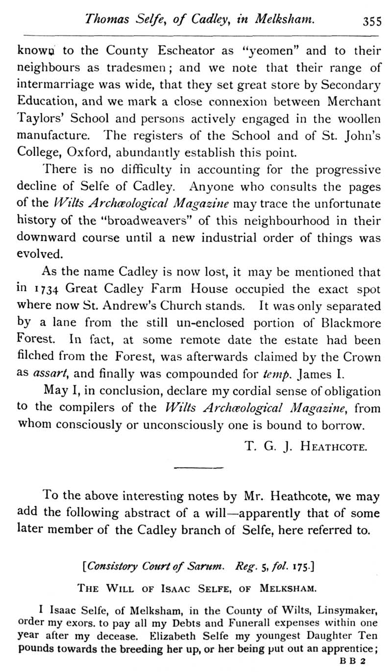 Page 22 Thomas Selfe, Cadley, Melksham