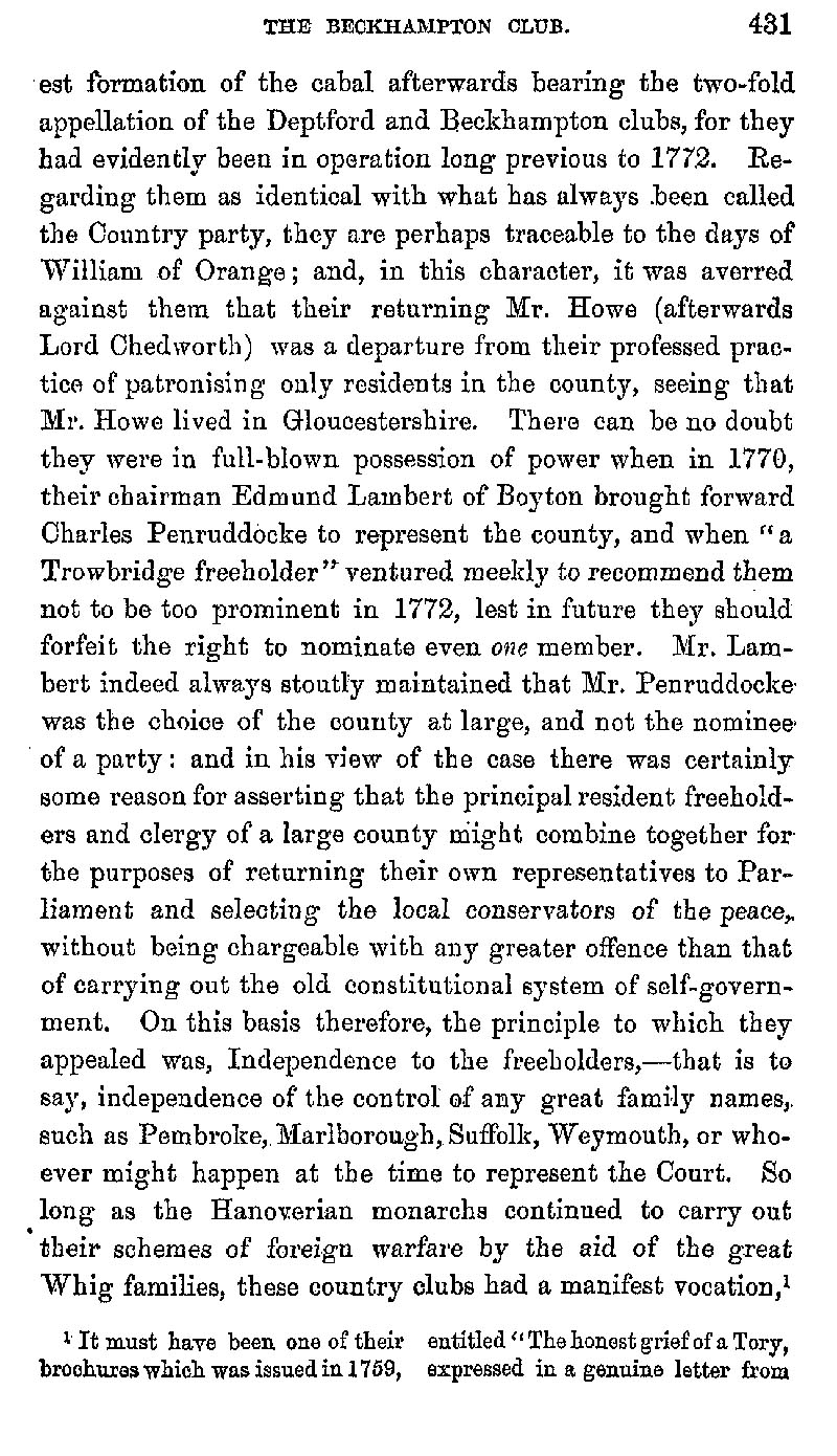 Page 437 Political Events from 1770; The Deptford Club, The American War, Lord Shelburne's Reform Association