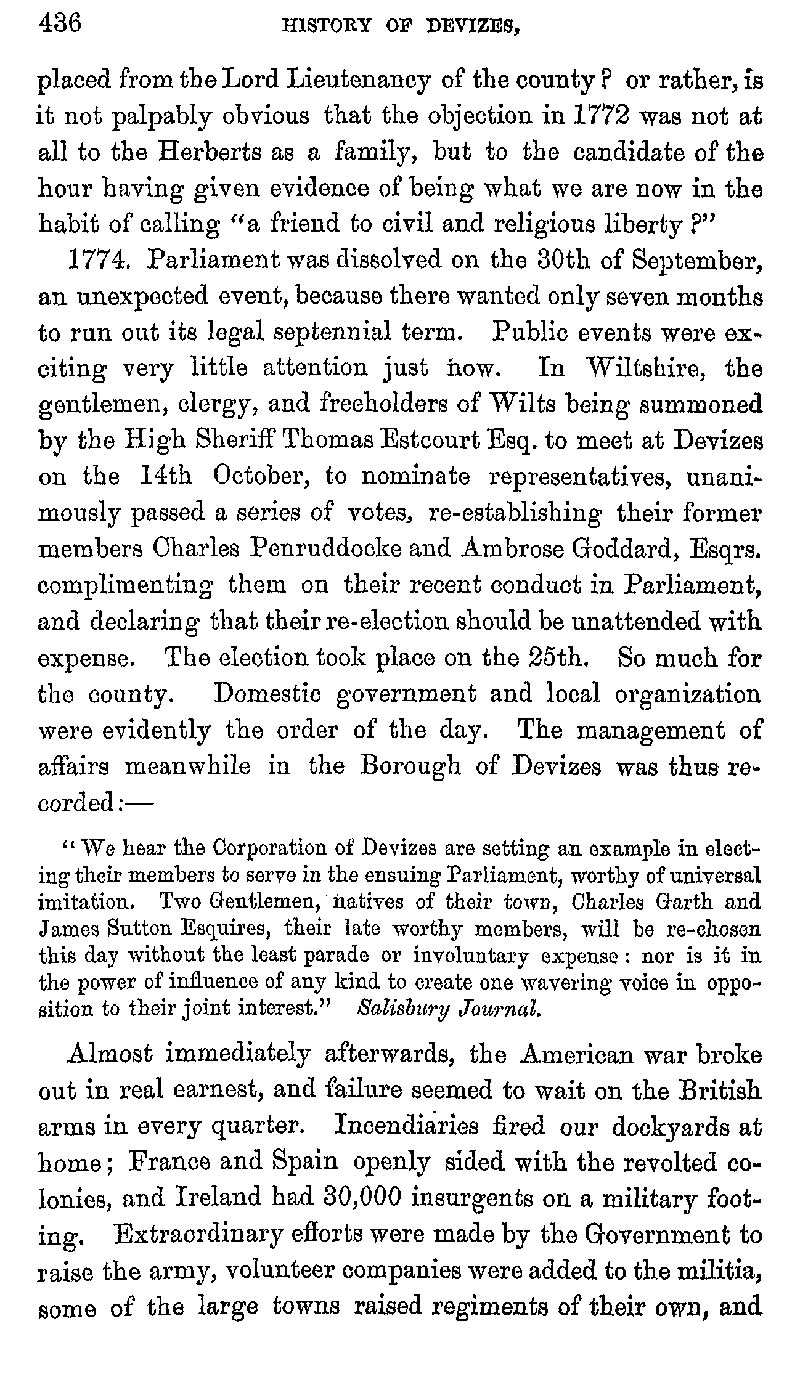 Page 442 Political Events from 1770; The Deptford Club, The American War, Lord Shelburne's Reform Association