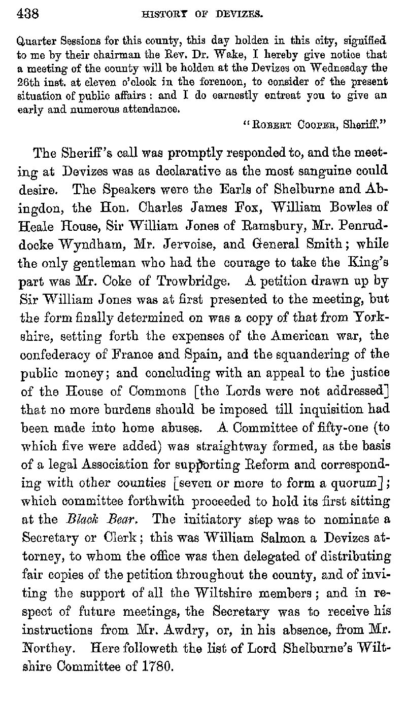 Page 444 Political Events from 1770; The Deptford Club, The American War, Lord Shelburne's Reform Association
