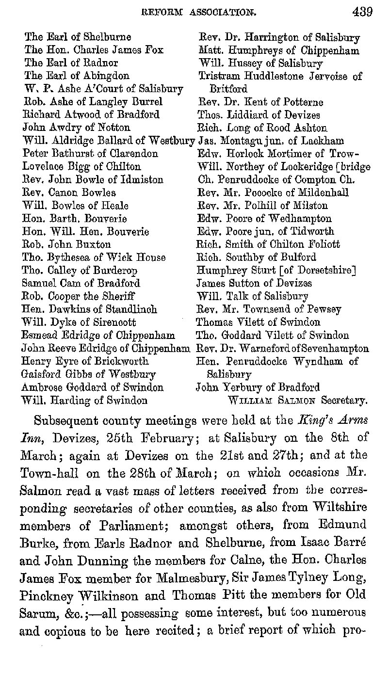 Page 445 Political Events from 1770; The Deptford Club, The American War, Lord Shelburne's Reform Association