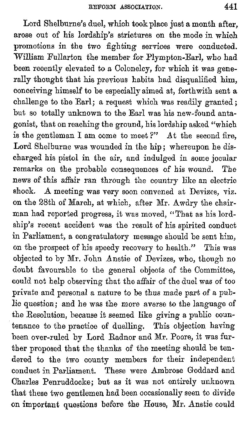 Page 447 Political Events from 1770; Lord Shelburne's Reform Association