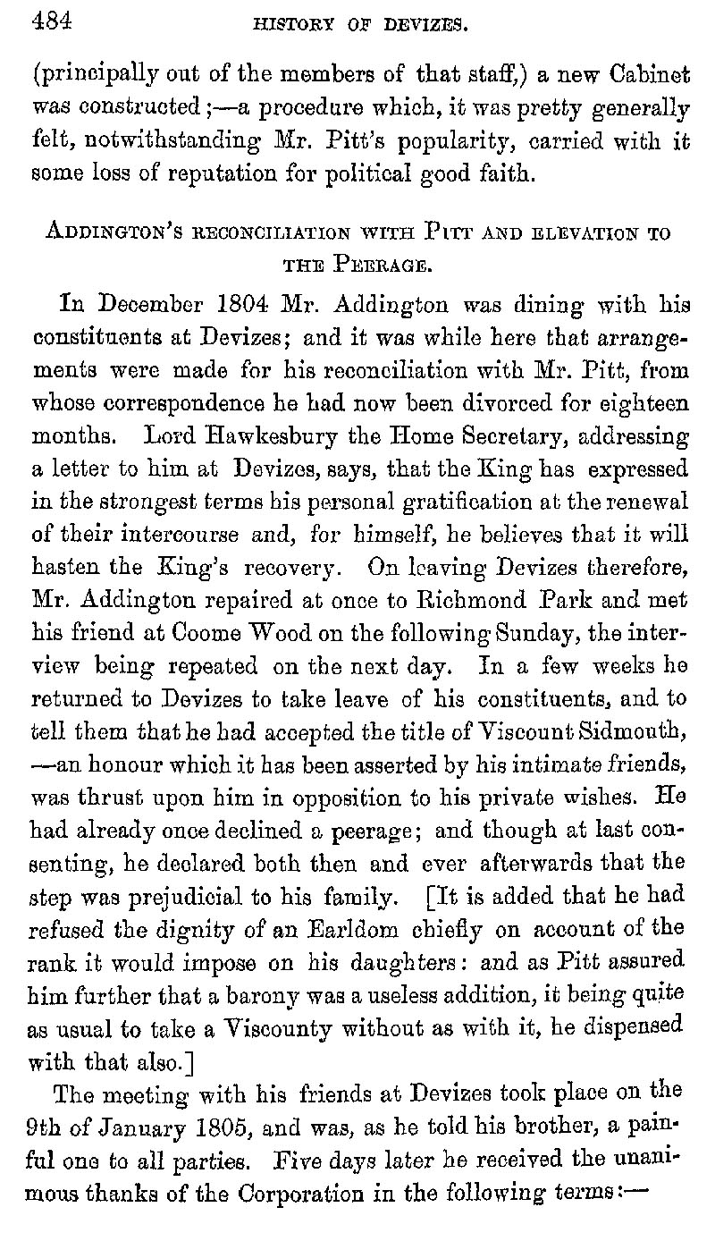 Page 491 Addington's Reconcilliation with Pitt and Elevation to the Peerage; 1804