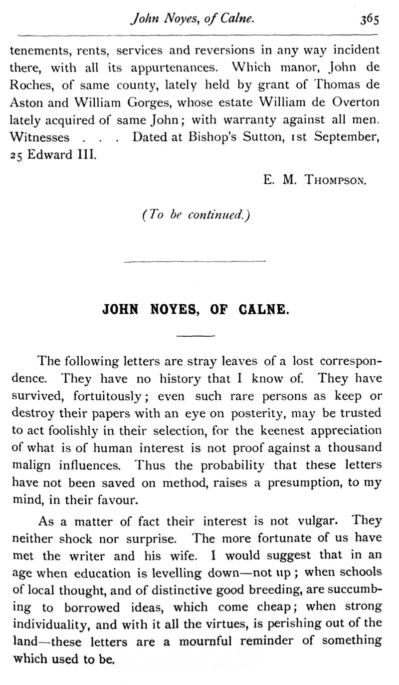 Chapter 9 Old Manor, Beanacre; Place House, Melksham; Thomas Selfe of Cadley, Melksham; Records of Wiltshire Parishes; John Noyes of Calne; Quakerism in Wiltshire; Feet of Fines for Wiltshire; Queries; Replies; Notes on Books