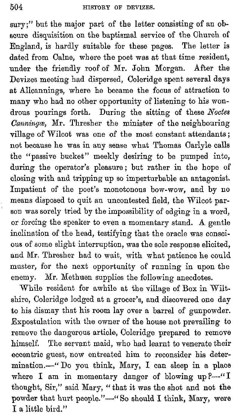 Page 512 Samuel Taylor Coleridge comes to Devizes; 1815