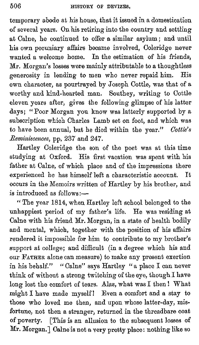 Page 514 Samuel Taylor Coleridge comes to Devizes; 1815