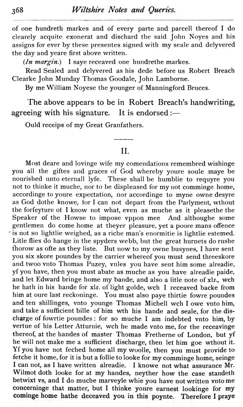 Chapter 9 Old Manor, Beanacre; Place House, Melksham; Thomas Selfe of Cadley, Melksham; Records of Wiltshire Parishes; John Noyes of Calne; Quakerism in Wiltshire; Feet of Fines for Wiltshire; Queries; Replies; Notes on Books