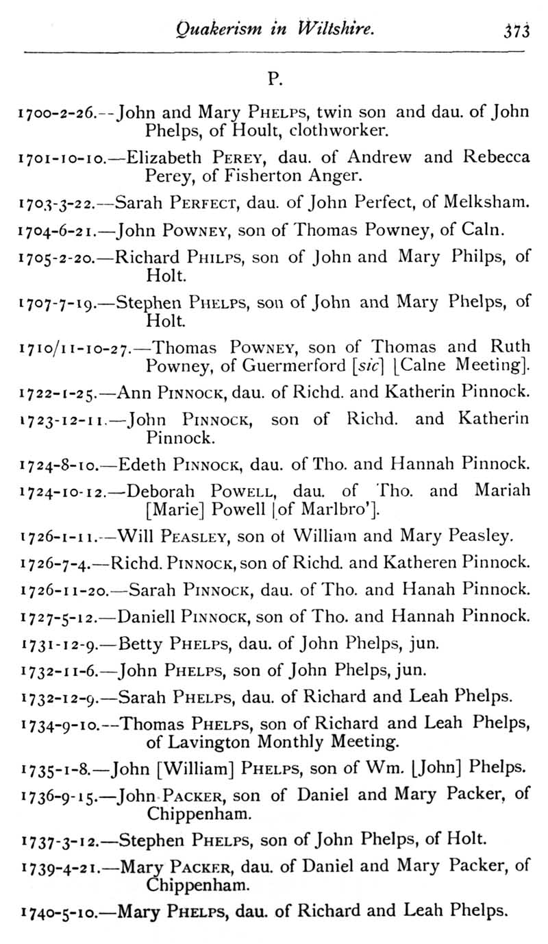 Chapter 9 Old Manor, Beanacre; Place House, Melksham; Thomas Selfe of Cadley, Melksham; Records of Wiltshire Parishes; John Noyes of Calne; Quakerism in Wiltshire; Feet of Fines for Wiltshire; Queries; Replies; Notes on Books