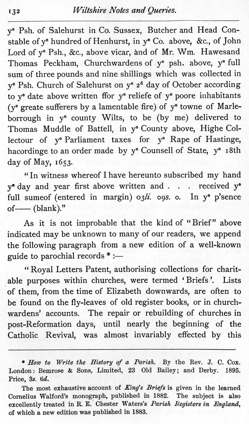 Page 35 Seend briefs (charitable collections within the church).Some documents relating to Braydon Forest.