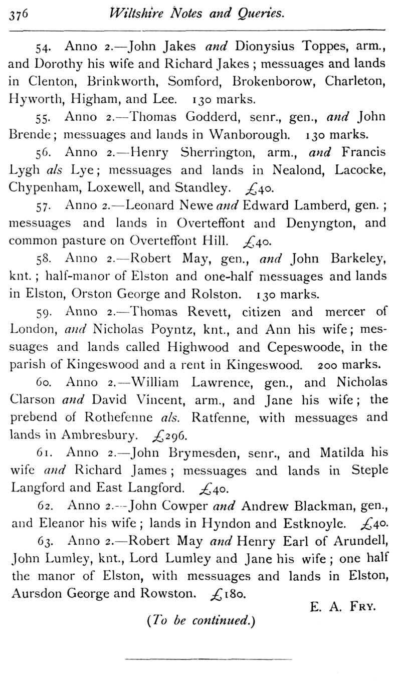 Chapter 9 Old Manor, Beanacre; Place House, Melksham; Thomas Selfe of Cadley, Melksham; Records of Wiltshire Parishes; John Noyes of Calne; Quakerism in Wiltshire; Feet of Fines for Wiltshire; Queries; Replies; Notes on Books