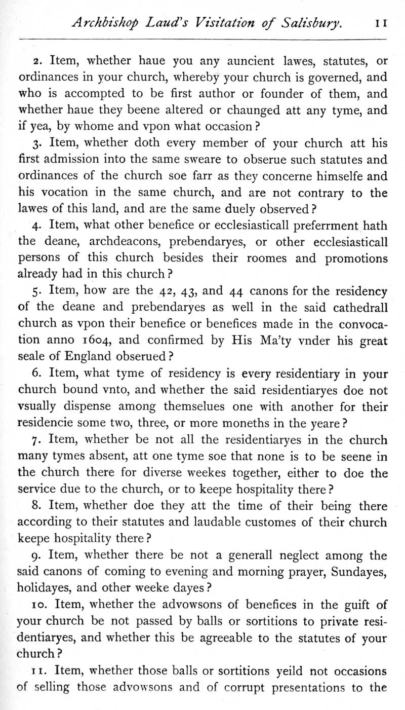 Page 11 Archbishop Laud's Visitation of Salisbury in 1634.