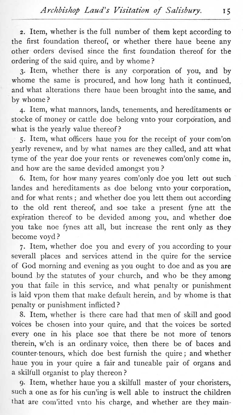 Page 15 Archbishop Laud's Visitation of Salisbury in 1634.
