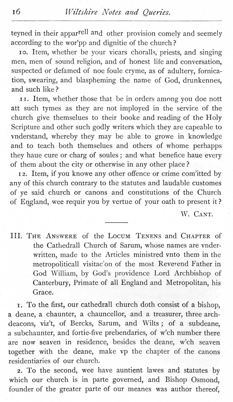 Page 16 Archbishop Laud's Visitation of Salisbury in 1634.