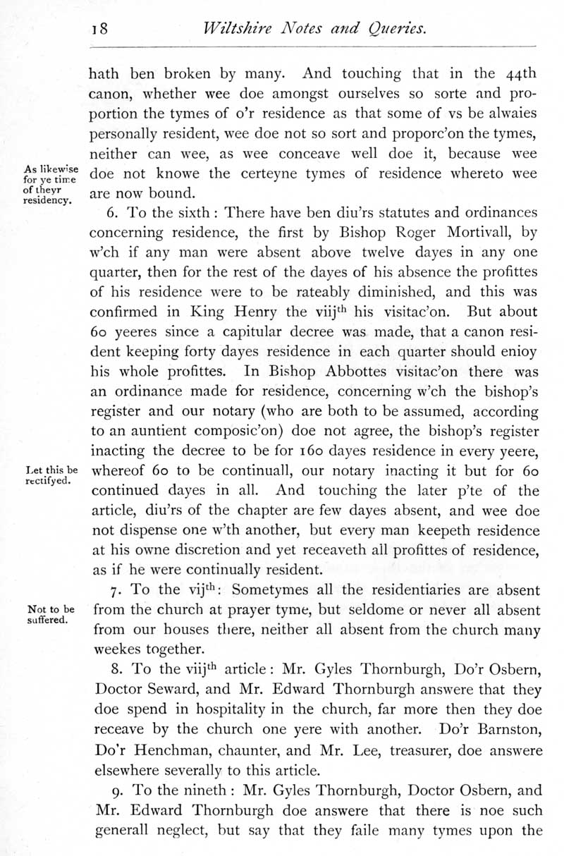 Page 18 Archbishop Laud's Visitation of Salisbury in 1634.