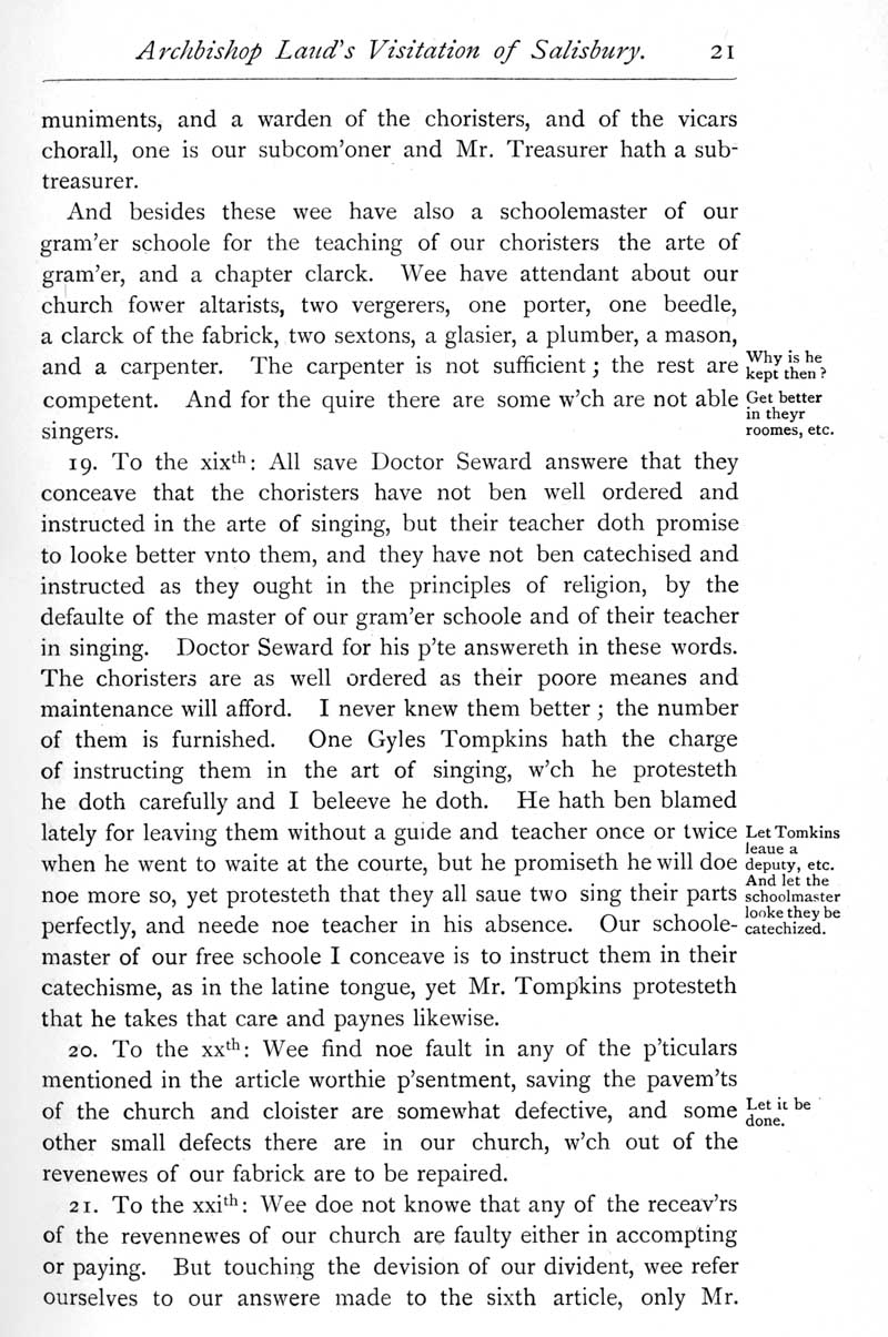 Page 21 Archbishop Laud's Visitation of Salisbury in 1634.