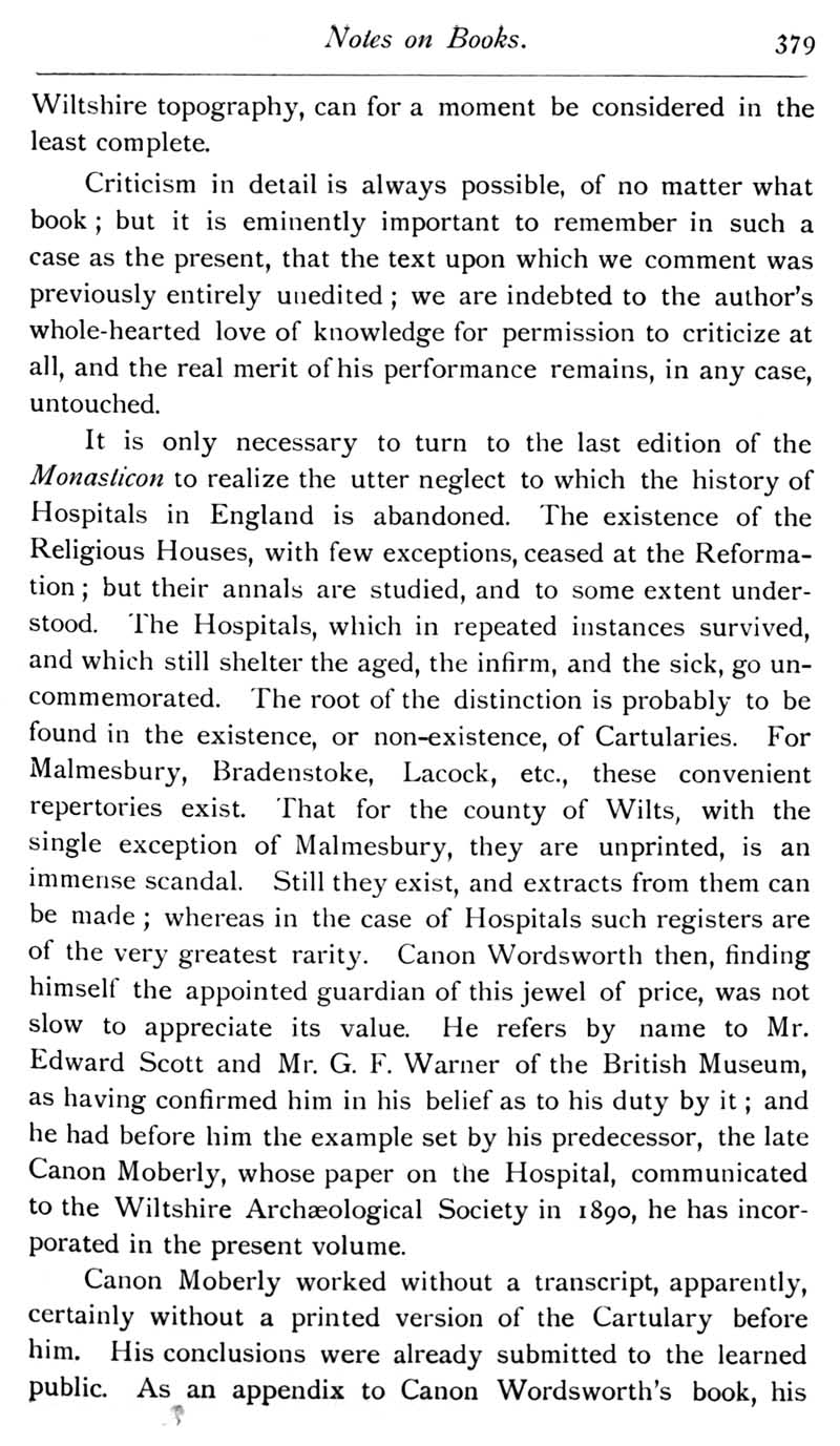 Chapter 9 Old Manor, Beanacre; Place House, Melksham; Thomas Selfe of Cadley, Melksham; Records of Wiltshire Parishes; John Noyes of Calne; Quakerism in Wiltshire; Feet of Fines for Wiltshire; Queries; Replies; Notes on Books
