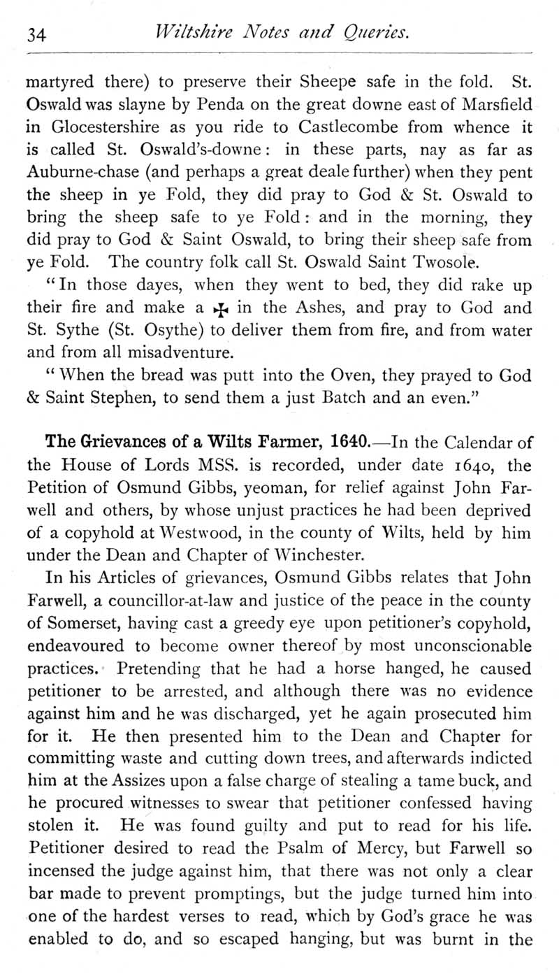 Page 33 Old custom of praying to saints. Petition to House of Lords of Osmund Gibbs against deprivation of his land at Westwood, 1640.