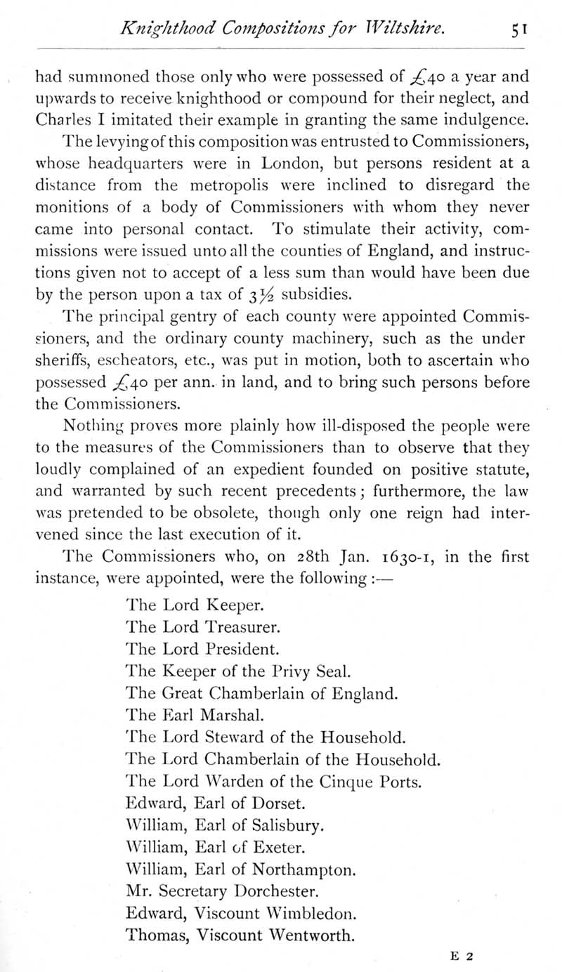 Page 4 Compositions for knighthood in Wiltshire, one of Charles 1's fiscal expedients in the 1630s.
