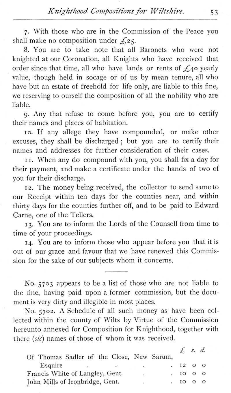 Page 6 Compositions for knighthood in Wiltshire, one of Charles 1's fiscal expedients in the 1630s.