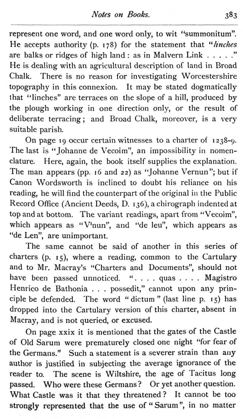 Chapter 9 Old Manor, Beanacre; Place House, Melksham; Thomas Selfe of Cadley, Melksham; Records of Wiltshire Parishes; John Noyes of Calne; Quakerism in Wiltshire; Feet of Fines for Wiltshire; Queries; Replies; Notes on Books