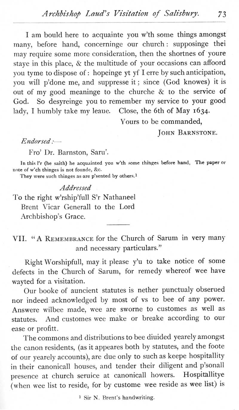 Page 26 Archbishop Laud's visitation of Salisbury in 1634.