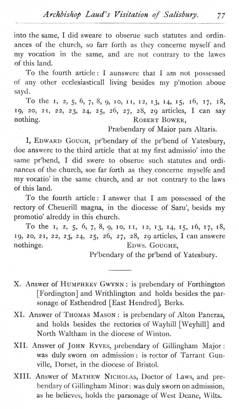 Page 30 Archbishop Laud's visitation of Salisbury in 1634: responses of Prebendaries Robert Bower, Edward Gough, Humphrey Gwynn, Thomas Mason, John Ryves and Mathew Nicholas.