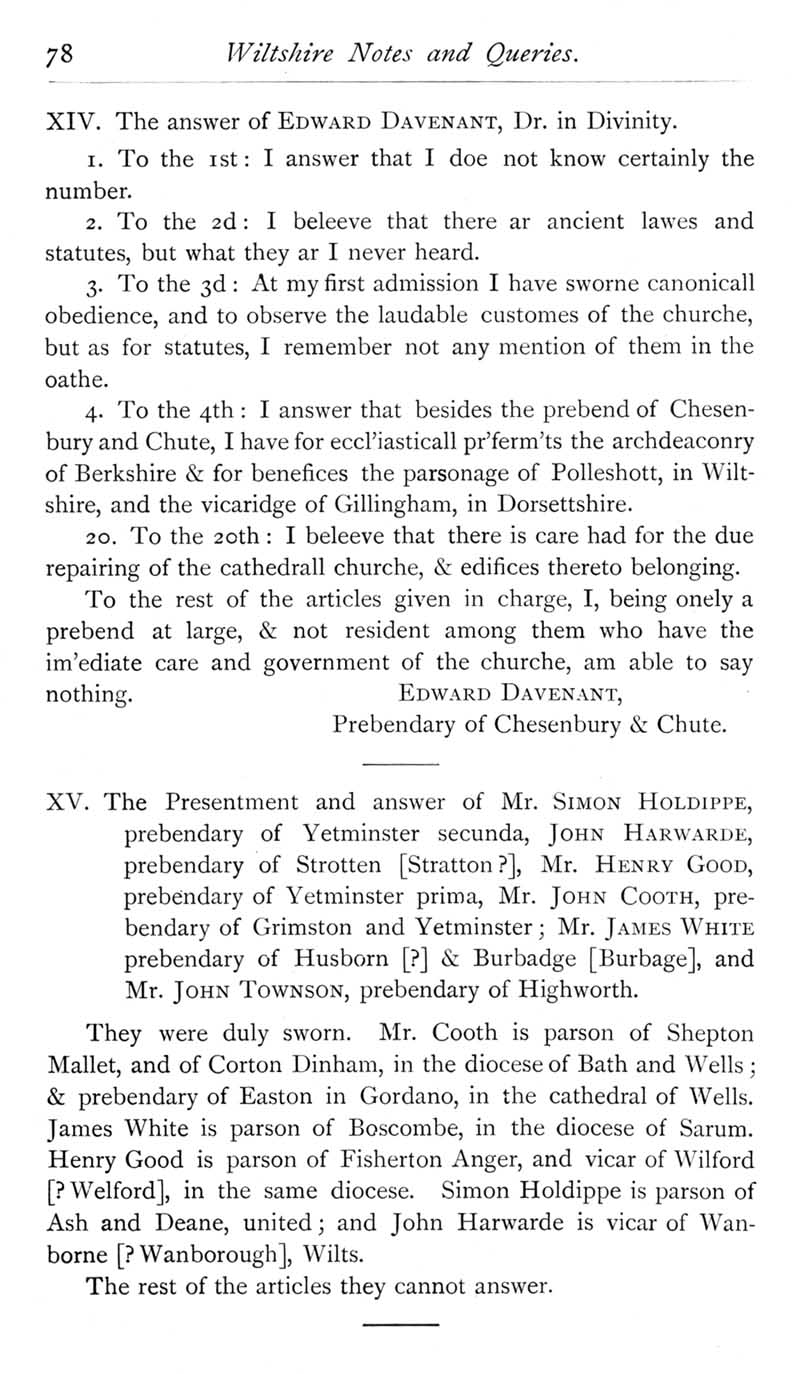 Page 31 Archbishop Laud's visitation of Salisbury in 1634.