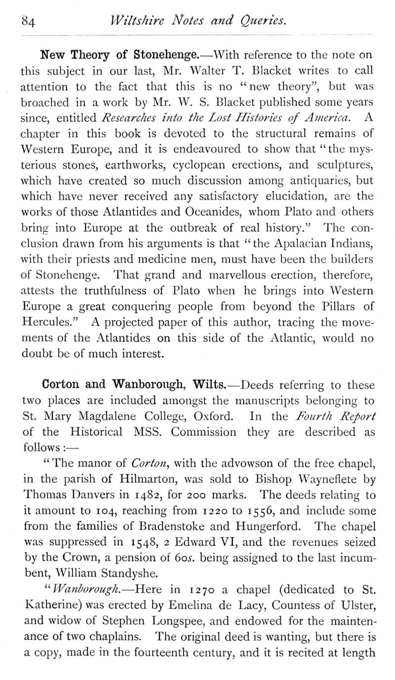 Page 37 New theory of Stonehenge. Deeds of manor of Corton and Wanborough chapel.