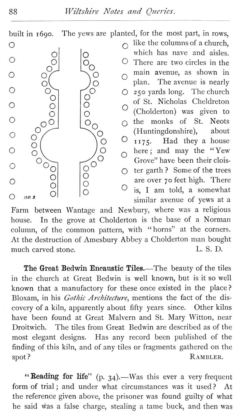 Page 41 Yew Grove at West Cholderton. Encaustic tiles made in a kiln at Great Bedwyn. \"Reading for life\" as a form of trial.