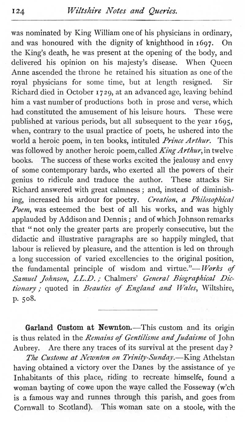 Page 29 Sir Richard Blackmore, a physician and native of Corsham. The garland custom at Long Newnton.