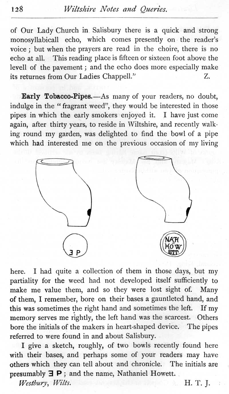 Page 33 The ritual use of rood-lofts: Salisbury Cathedral. Early tobacco pipes, made by Nathaniel Howett.