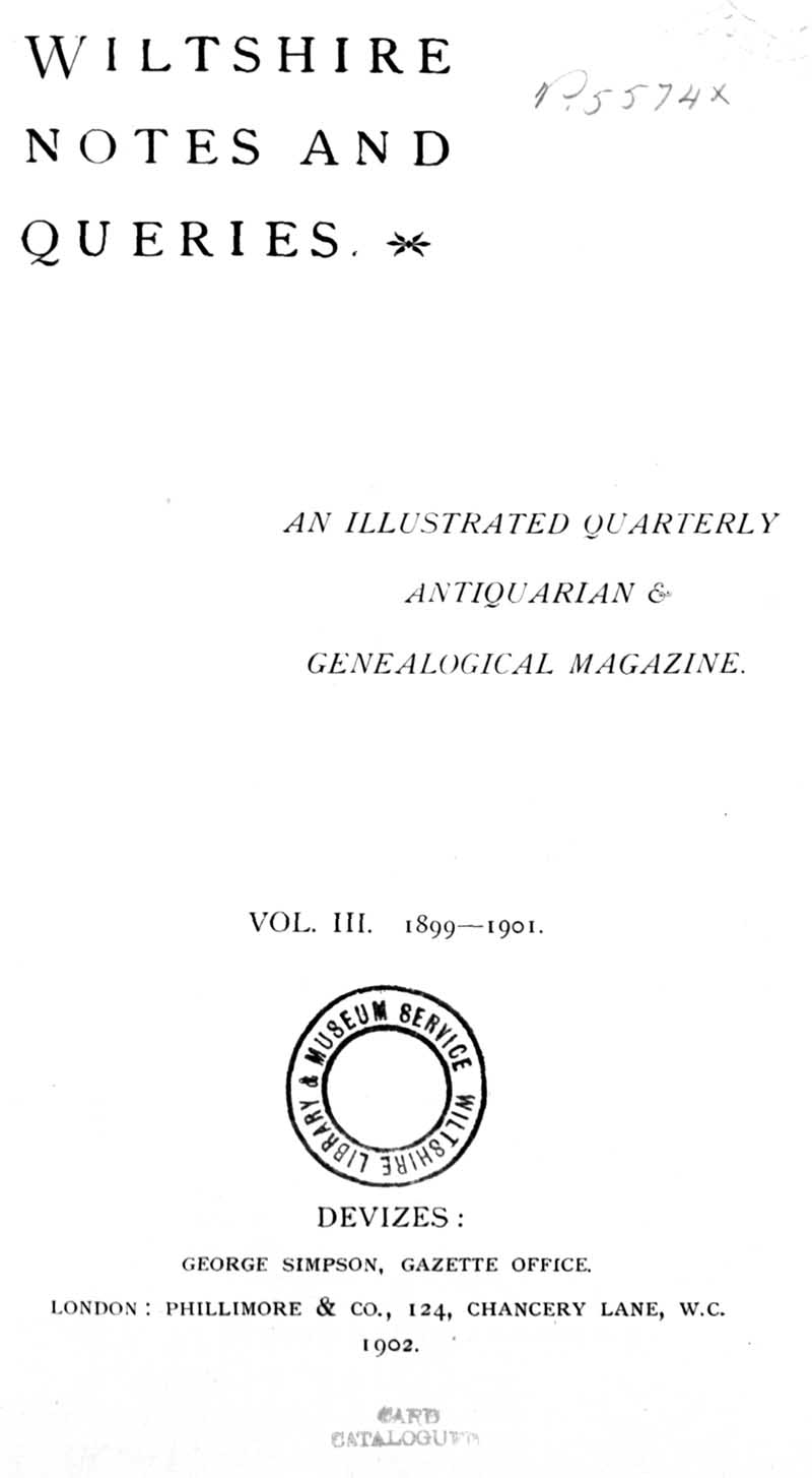 Page 1 Title page; Wiltshire Notes and Queries Vol. 3 1899-1901