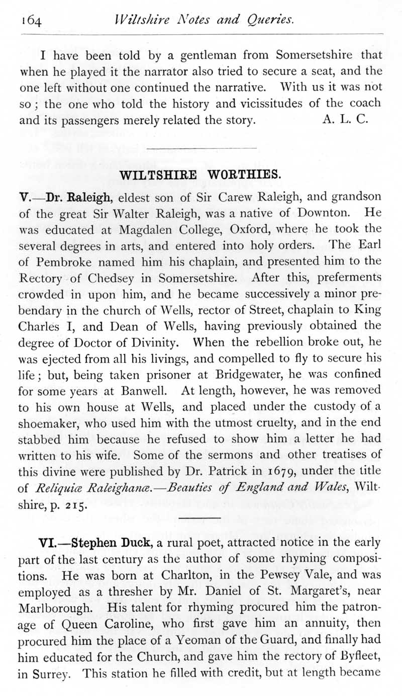 Page 19 Children's games. Dr Raleigh, a native of Downton. Stephen Duck.