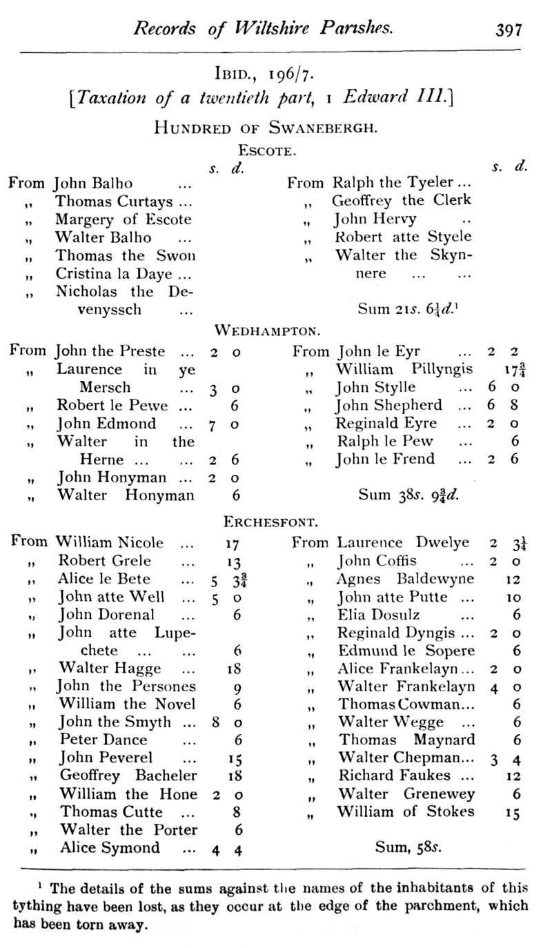 Page 13 Records of Wiltshire Parishes: Urchfont with Stert.
