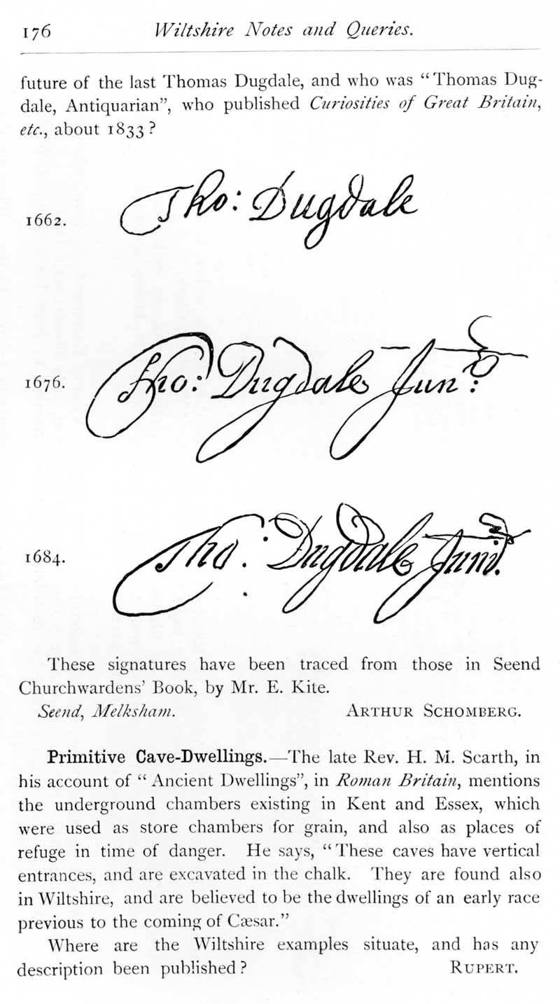 Page 31 Pedigree of Dugdale of Wiltshire. Primitive cave-dwellings in Wiltshire.