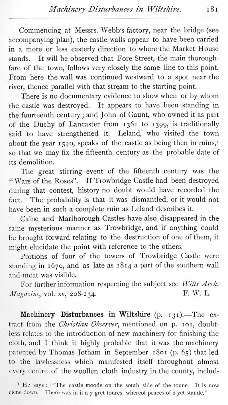 Page 36 Trowbridge castle. Machine-breaking riots in Wiltshire.