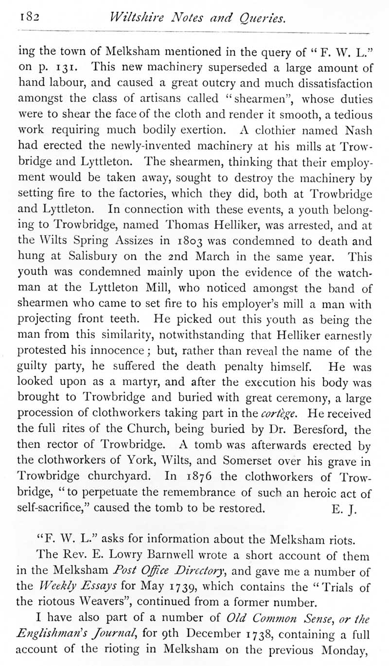 Page 37 Machine-breaking riots in Wiltshire and earlier riots at Melksham.