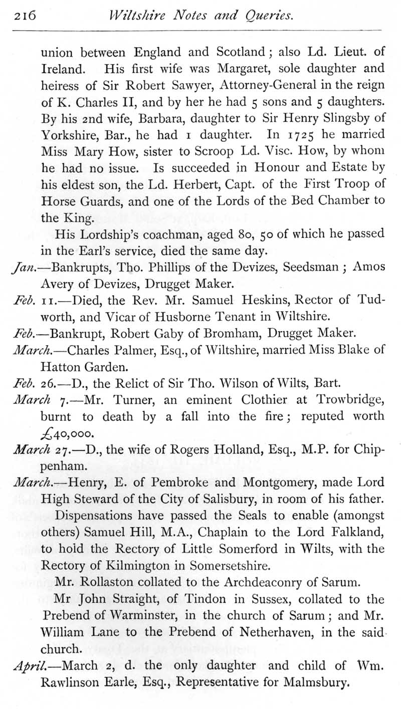 Page 25 Wiltshire extracts from The Gentleman's Magazine for 1733.