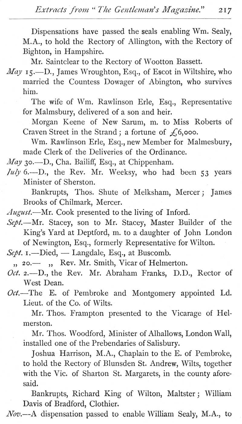 Page 26 Wiltshire extracts from The Gentleman's Magazine for 1733.